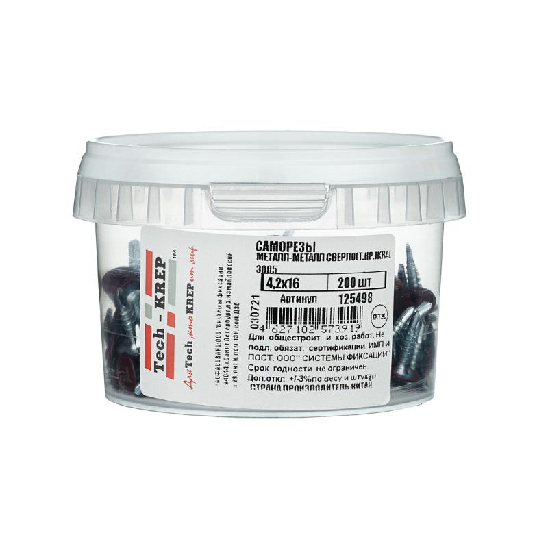 Саморез ШСММ св. 4,2х16 т.кр. KP RAL 3005 (200 шт) - ведро малое ( 0,34 кг) | 125498 | Tech-KREP