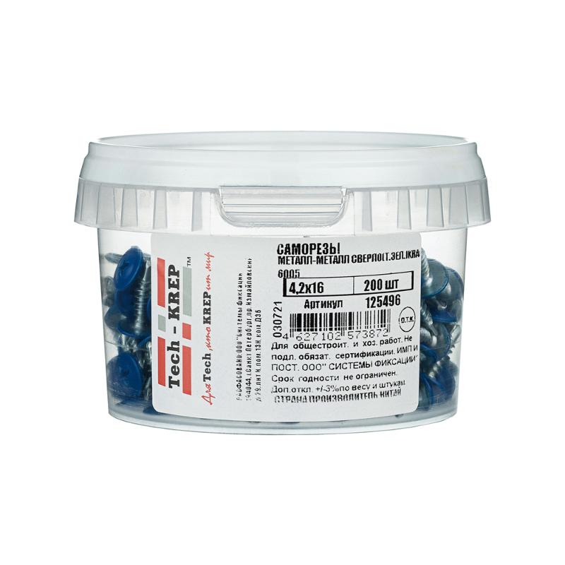 Саморез ШСММ св. 4,2х16 т.зел. KP RAL 6005 (200 шт) - ведро малое ( 0,34 кг) | 125496 | Tech-KREP