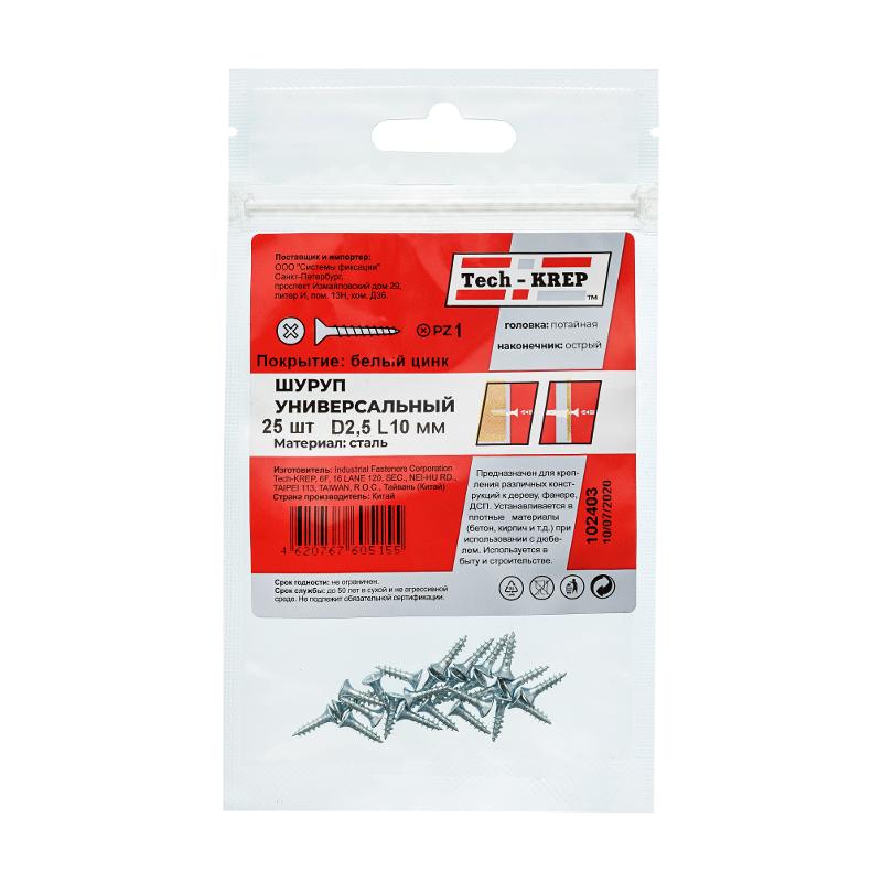 Саморез ШУц 2,5х10 пот. гол. (25 шт) - пакет ( 0,01 кг) | 102403 | Tech-KREP