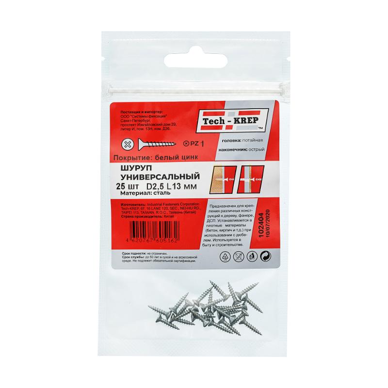Саморез ШУц 2,5х13 пот. гол. (25 шт) - пакет ( 0,01 кг) | 102404 | Tech-KREP