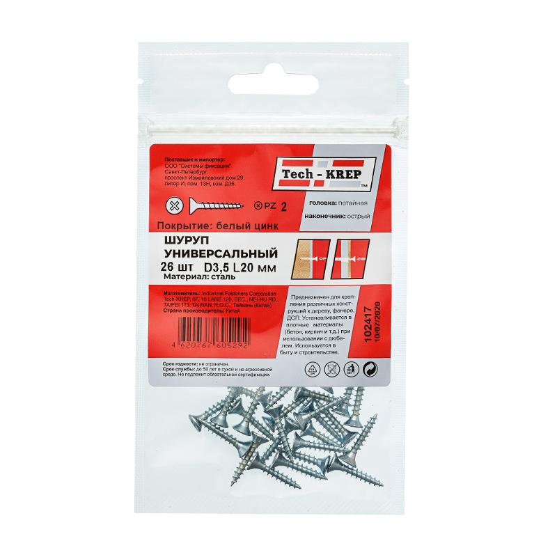 Саморез ШУц 3,5х20 пот. гол. (26 шт) - пакет ( 0,026 кг) | 102417 | Tech-KREP