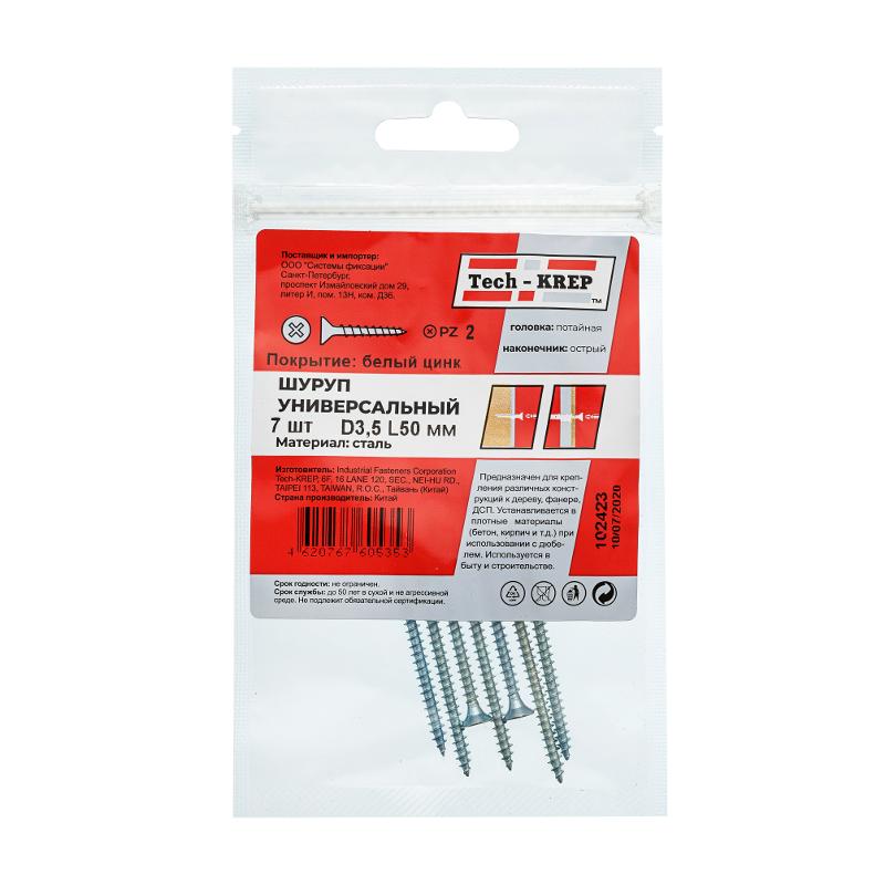 Саморез ШУц 3,5х50 пот. гол. (7 шт) - пакет ( 0,017 кг) | 102423 | Tech-KREP