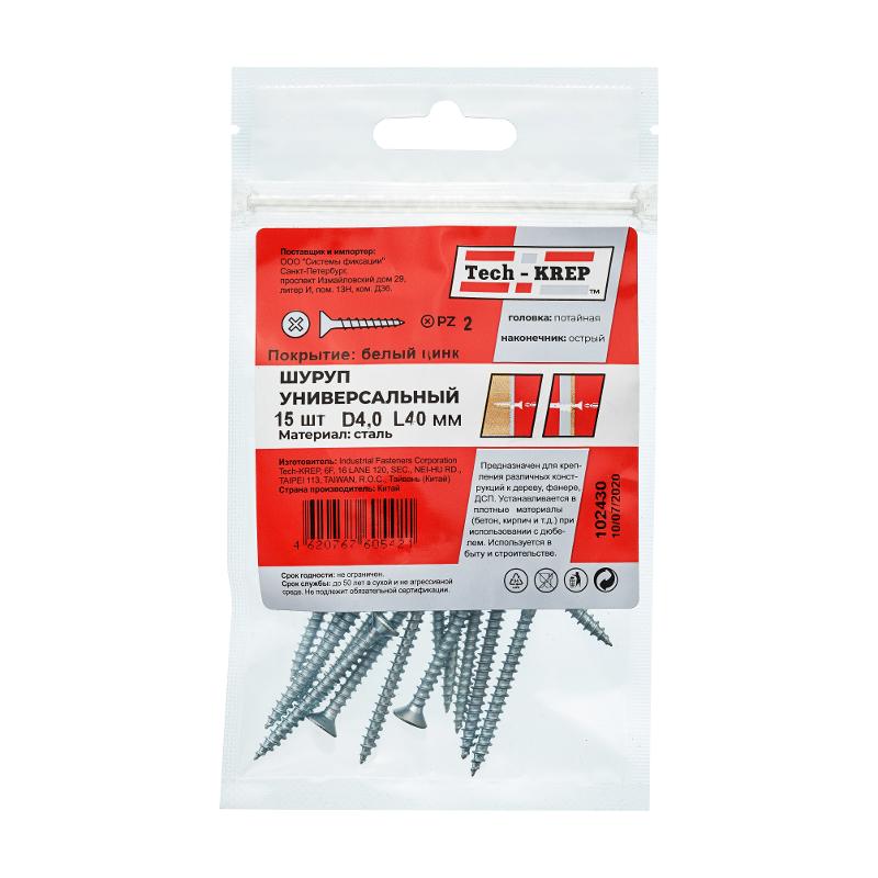 Саморез ШУц 4,0х40 пот. гол. (15 шт) - пакет ( 0,034 кг) | 102430 | Tech-KREP