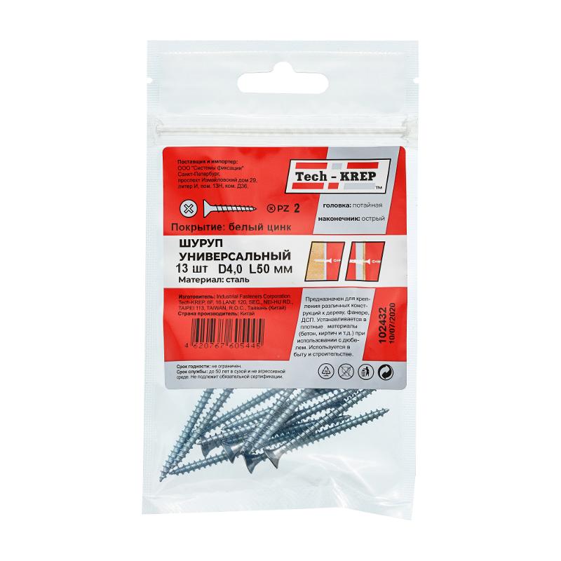 Саморез ШУц 4,0х50 пот. гол. (13 шт) - пакет ( 0,037 кг) | 102432 | Tech-KREP