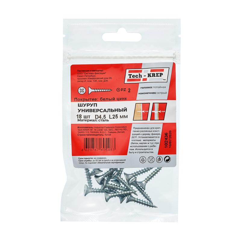 Саморез ШУц 4,5х25 пот. гол. (18 шт) - пакет ( 0,036 кг) | 102436 | Tech-KREP