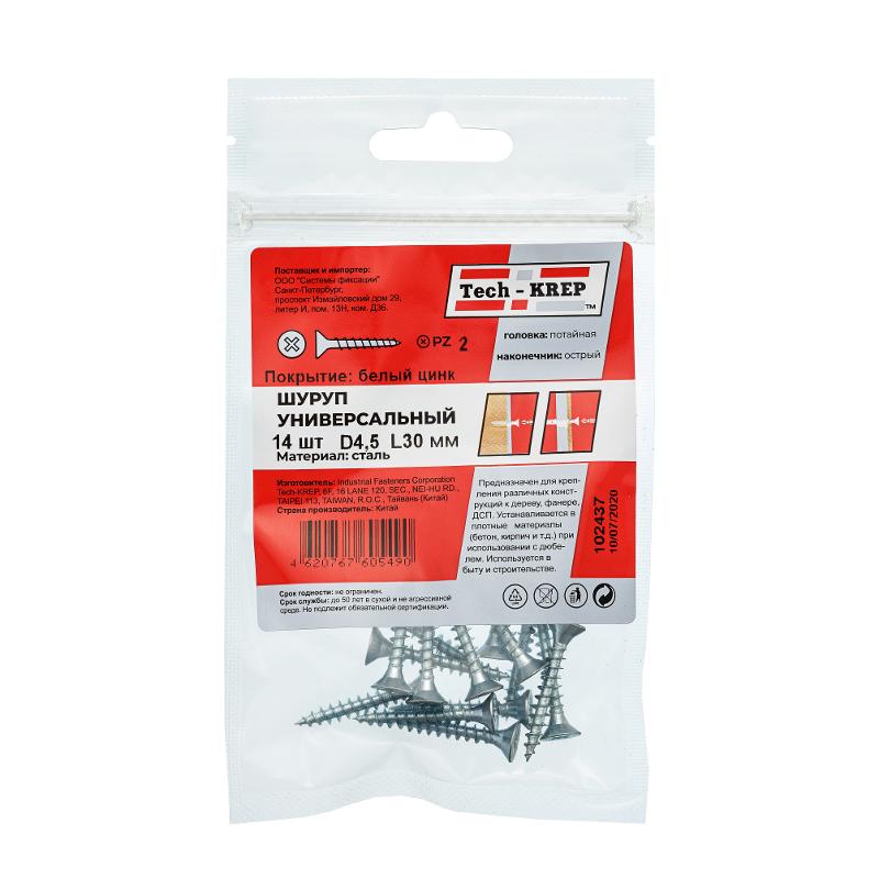 Саморез ШУц 4,5х30 пот. гол. (14 шт) - пакет ( 0,033 кг) | 102437 | Tech-KREP