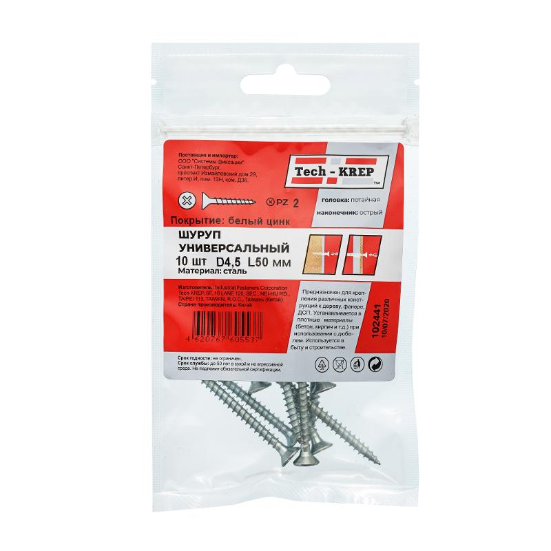 Саморез ШУц 4,5х50 пот. гол. (10 шт) - пакет ( 0,036 кг) | 102441 | Tech-KREP