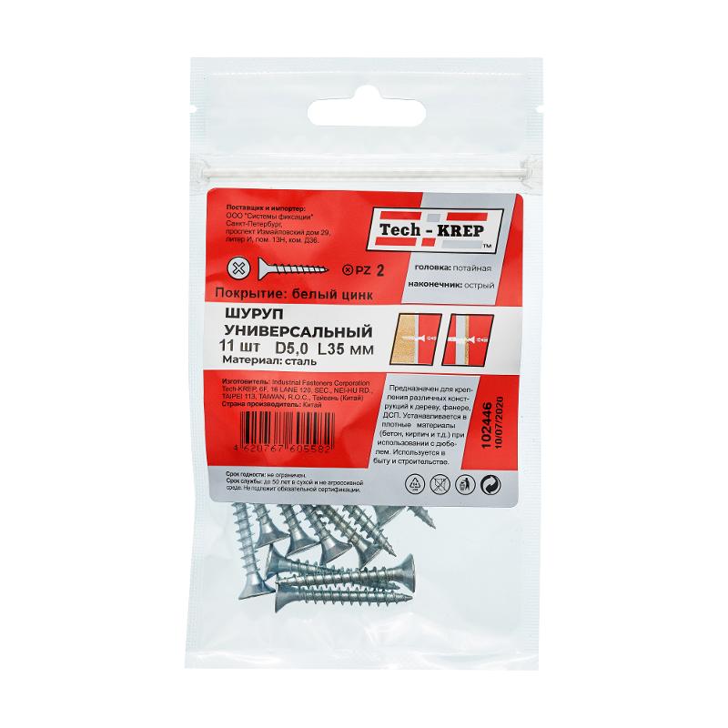 Саморез ШУц 5,0х35 пот. гол. (11 шт) - пакет ( 0,035 кг) | 102446 | Tech-KREP