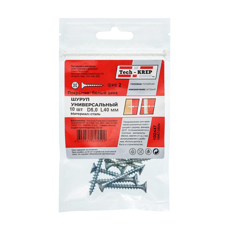 Саморез ШУц 5,0х40 пот. гол. (10 шт) - пакет ( 0,037 кг) | 102447 | Tech-KREP
