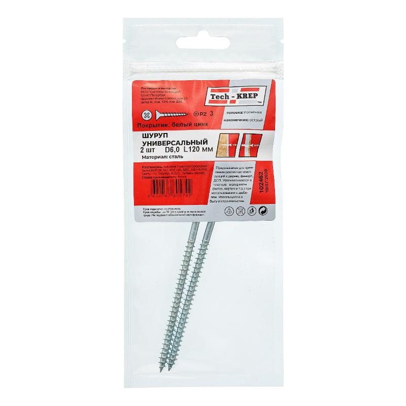 Саморез ШУц 6,0х120 пот. гол. (2 шт) - пакет ( 0,031 кг) | 102462 | Tech-KREP