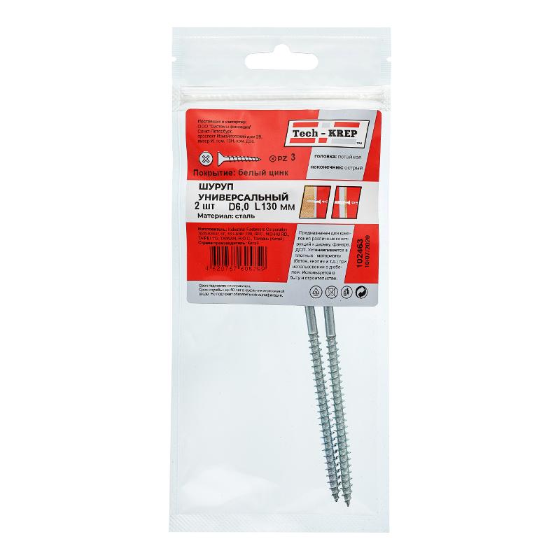 Саморез ШУц 6,0х130 пот. гол. (2 шт) - пакет ( 0,033 кг) | 102463 | Tech-KREP