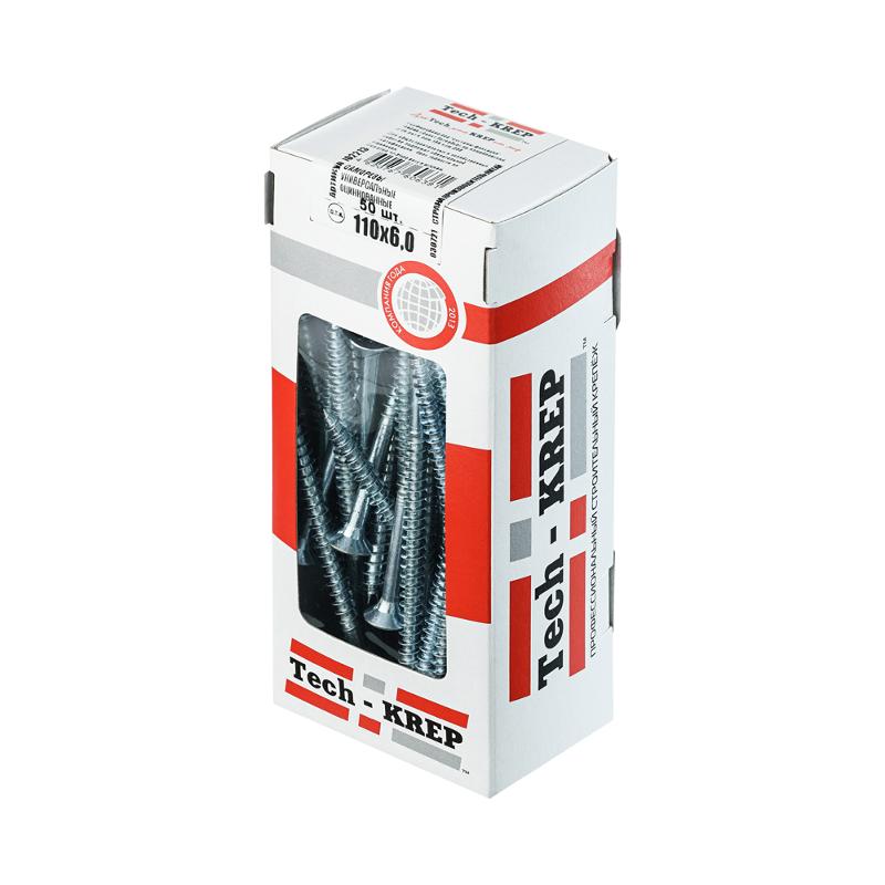 Саморезы универсальные 110х6,0 мм (50 шт) оцинкованные - коробка с окном ( 0,636 кг) | 102213 | Tech-KREP