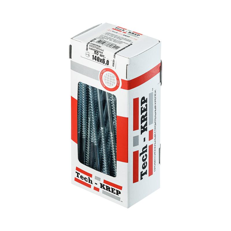 Саморезы универсальные 140х6,0 мм (50 шт) оцинкованные - коробка с окном ( 0,826 кг) | 102216 | Tech-KREP