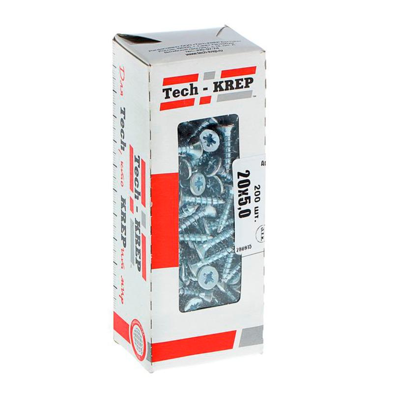 Саморезы универсальные 20х5,0 мм (200 шт) оцинкованные - коробка с окном ( 0,386 кг) | 102195 | Tech-KREP