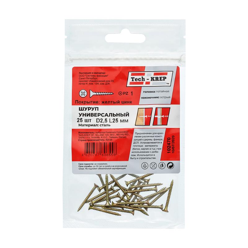 Саморез ШУж 2,5х25 пот. гол. (25 шт) - пакет ( 0,017 кг) | 102470 | Tech-KREP