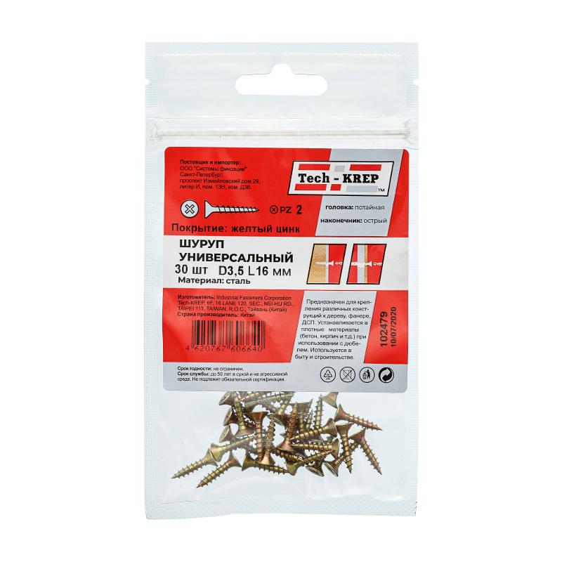 Саморез ШУж 3,5х16 пот. гол. (30 шт) - пакет ( 0,026 кг) | 102479 | Tech-KREP