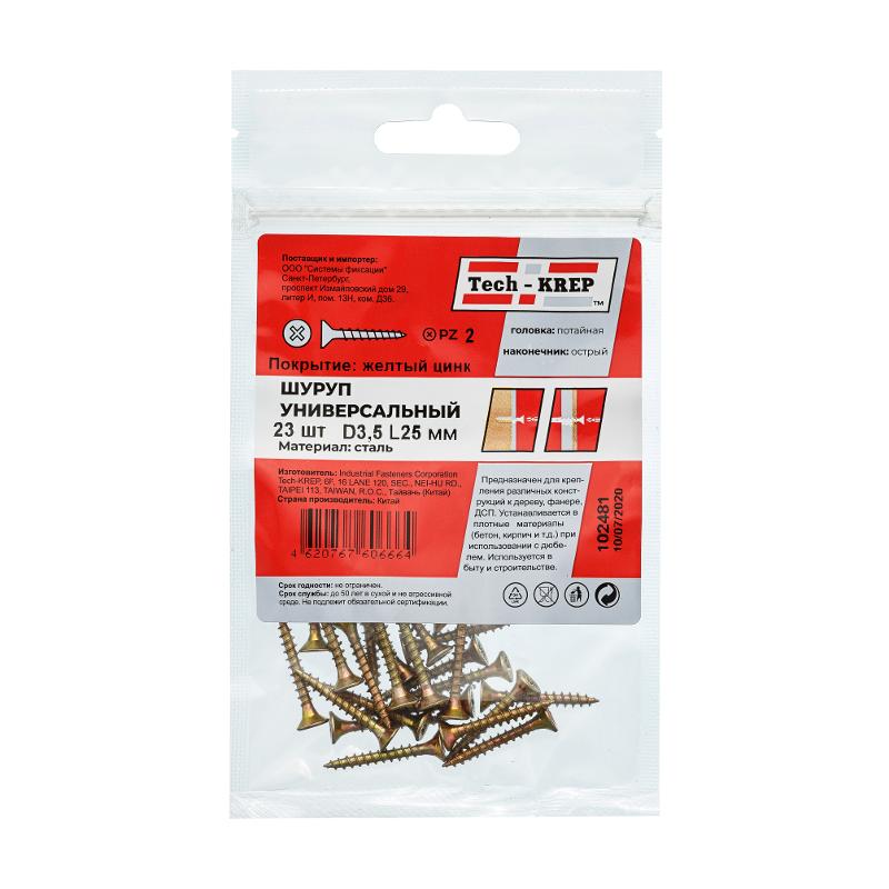 Саморез ШУж 3,5х25 пот. гол. (23 шт) - пакет ( 0,027 кг) | 102481 | Tech-KREP