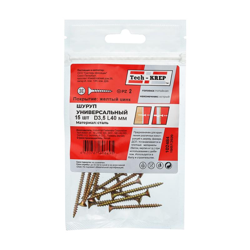 Саморез ШУж 3,5х40 пот. гол. (15 шт) - пакет ( 0,026 кг) | 102484 | Tech-KREP
