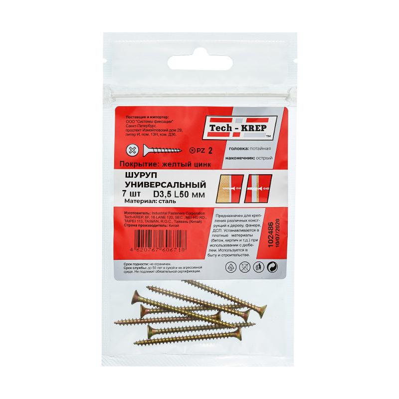 Саморез ШУж 3,5х50 пот. гол. (7 шт) - пакет ( 0,017 кг) | 102486 | Tech-KREP