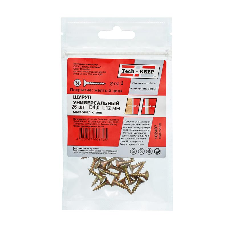 Саморез ШУж 4,0х12 пот. гол. (26 шт) - пакет ( 0,029 кг) | 102487 | Tech-KREP