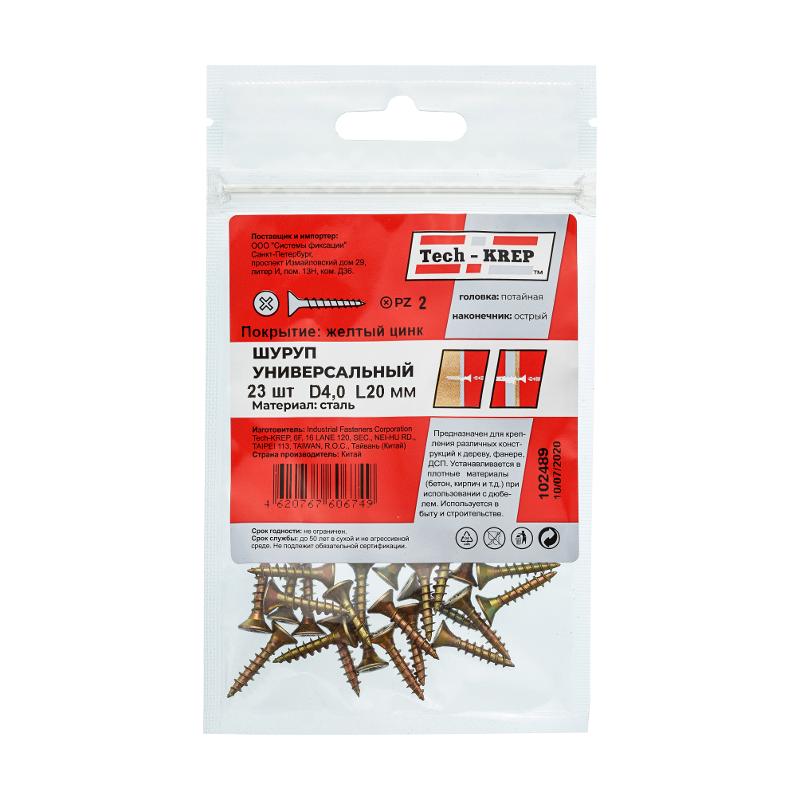 Саморез ШУж 4,0х20 пот. гол. (23 шт) - пакет ( 0,033 кг) | 102489 | Tech-KREP