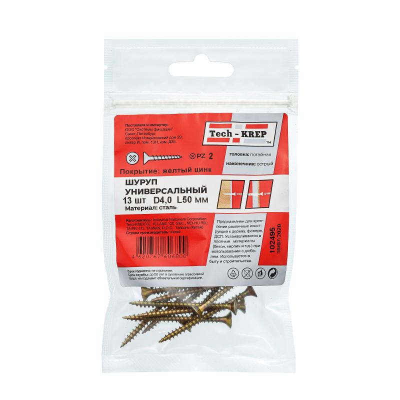 Саморез ШУж 4,0х50 пот. гол. (13 шт) - пакет ( 0,039 кг) | 102495 | Tech-KREP