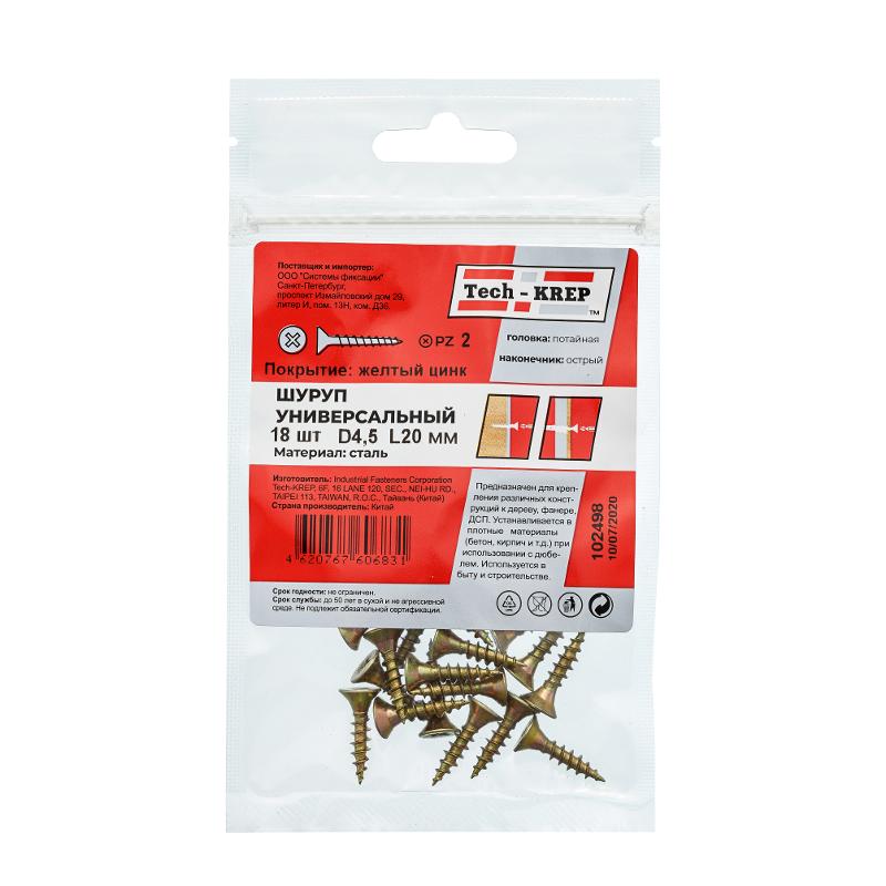 Саморез ШУж 4,5х20 пот. гол. (18 шт) - пакет ( 0,03 кг) | 102498 | Tech-KREP