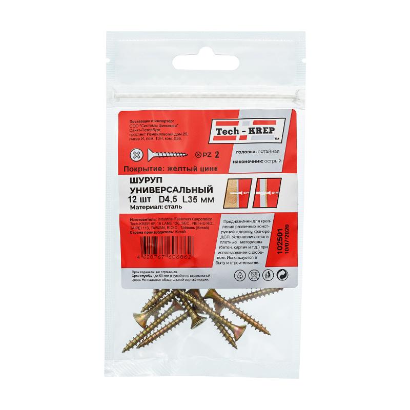 Саморез ШУж 4,5х35 пот. гол. (12 шт) - пакет ( 0,033 кг) | 102501 | Tech-KREP