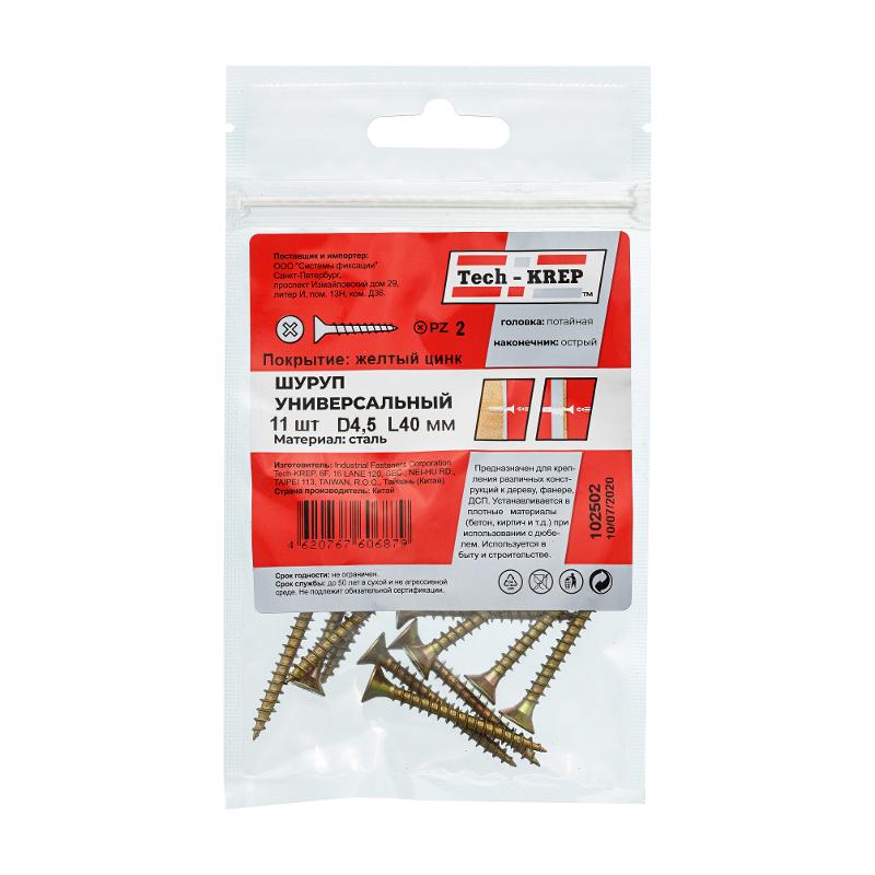 Саморез ШУж 4,5х40 пот. гол. (11 шт) - пакет ( 0,033 кг) | 102502 | Tech-KREP