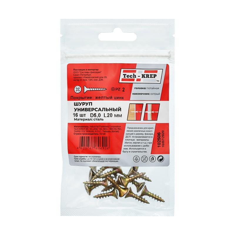Саморез ШУж 5,0х20 пот. гол. (16 шт) - пакет ( 0,03 кг) | 102506 | Tech-KREP