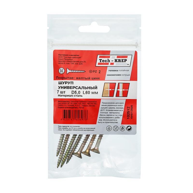 Саморез ШУж 5,0х60 пот. гол. (7 шт) - пакет ( 0,037 кг) | 102512 | Tech-KREP
