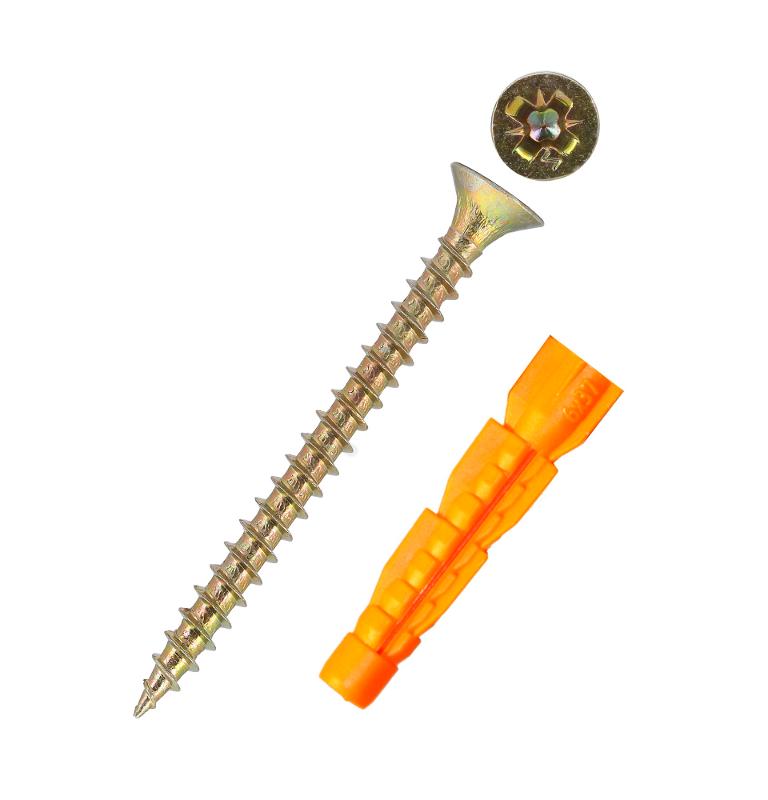 Саморез ШУж 5,0х70 пот. гол. + дюбель унив 8х52 (9 шт) - пакет ( 0,064 кг) | 112941 | Tech-KREP