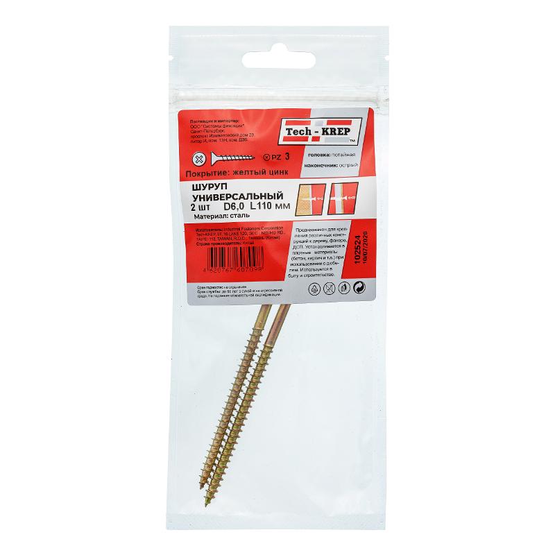 Саморез ШУж 6,0х110 пот. гол. (2 шт) - пакет ( 0,027 кг) | 102524 | Tech-KREP