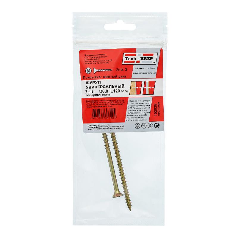 Саморез ШУж 6,0х120 пот. гол. (2 шт) - пакет ( 0,03 кг) | 102525 | Tech-KREP