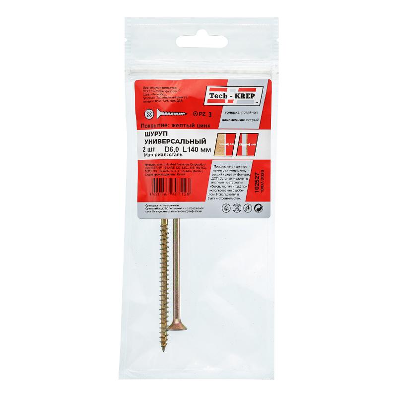 Саморез ШУж 6,0х140 пот. гол. (2 шт) - пакет ( 0,033 кг) | 102527 | Tech-KREP