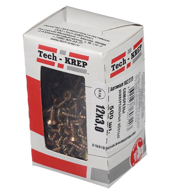Саморезы универсальные 12х3,0 мм (500 шт) желтые - коробка с окном ( 0,209 кг) | 102223 | Tech-KREP