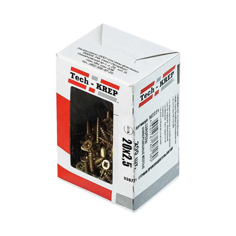 Саморезы универсальные 20х2,5 мм (200 шт) желтые - коробка с окном ( 0,103 кг) | 102221 | Tech-KREP
