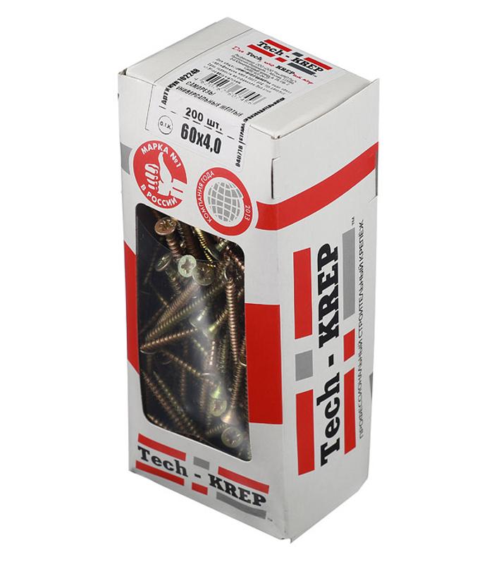 Саморезы универсальные 60х4,0 мм (200 шт) желтые - коробка с окном ( 0,61 кг) | 102248 | Tech-KREP