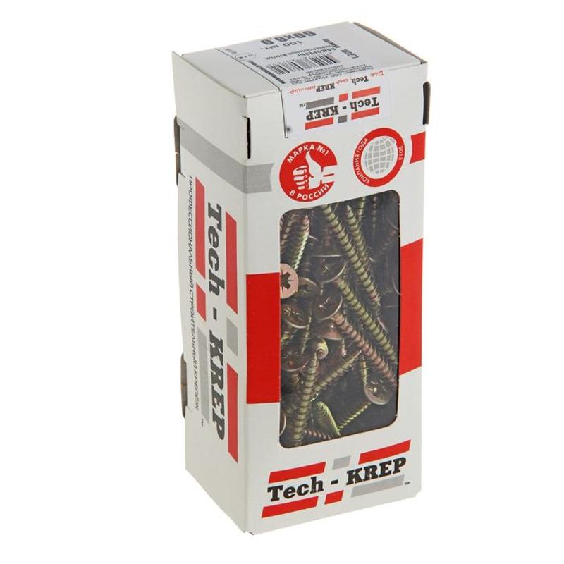 Саморезы универсальные 60х6,0 мм (100 шт) желтые - коробка с окном ( 0,699 кг) | 102271 | Tech-KREP