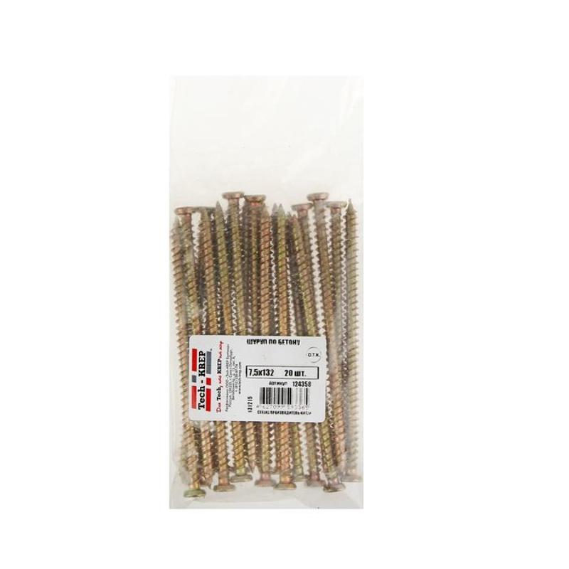 Шуруп по бетону 7,5x132 (20 шт) - пакет ( 0,477 кг) | 124358 | Tech-KREP