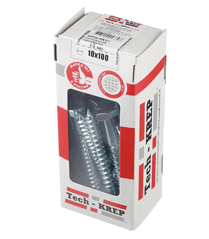 Болт DIN 571 сантехнический оцинк 10х100 (15 шт) - коробка с ок. Tech-Kr ( 0,768 кг) | 126561 | Tech-KREP