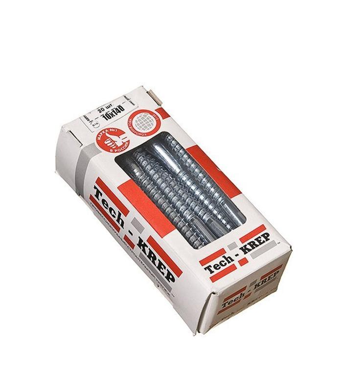 Болт DIN 571 сантехнический оцинк 10х140 (20 шт) - коробка с ок. Tech-Kr ( 1,395 кг) | 126563 | Tech-KREP