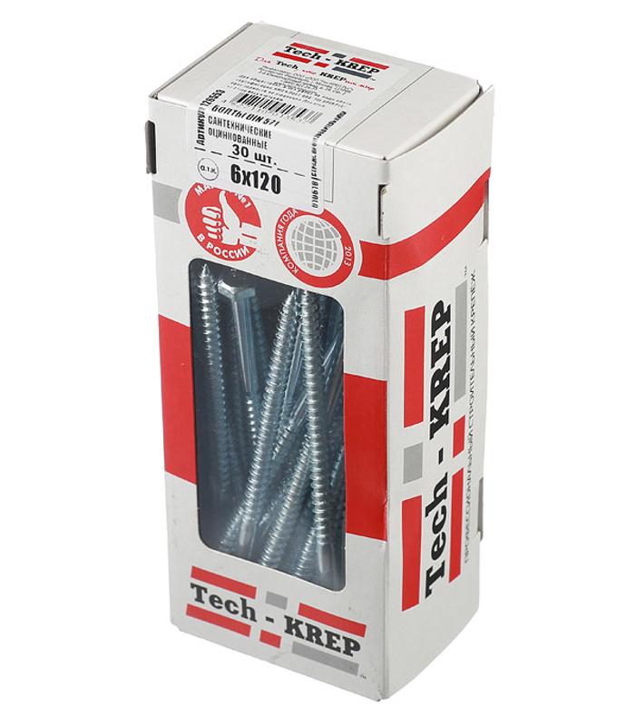 Болт DIN 571 сантехнический оцинк 6х120 (30 шт) - коробка с ок. Tech-Kr ( 0,604 кг) | 126553 | Tech-KREP