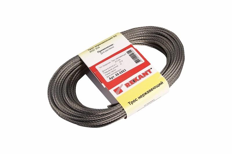Трос нержавеющий d=3 мм, (моток 20 м) | 09-5503 | REXANT