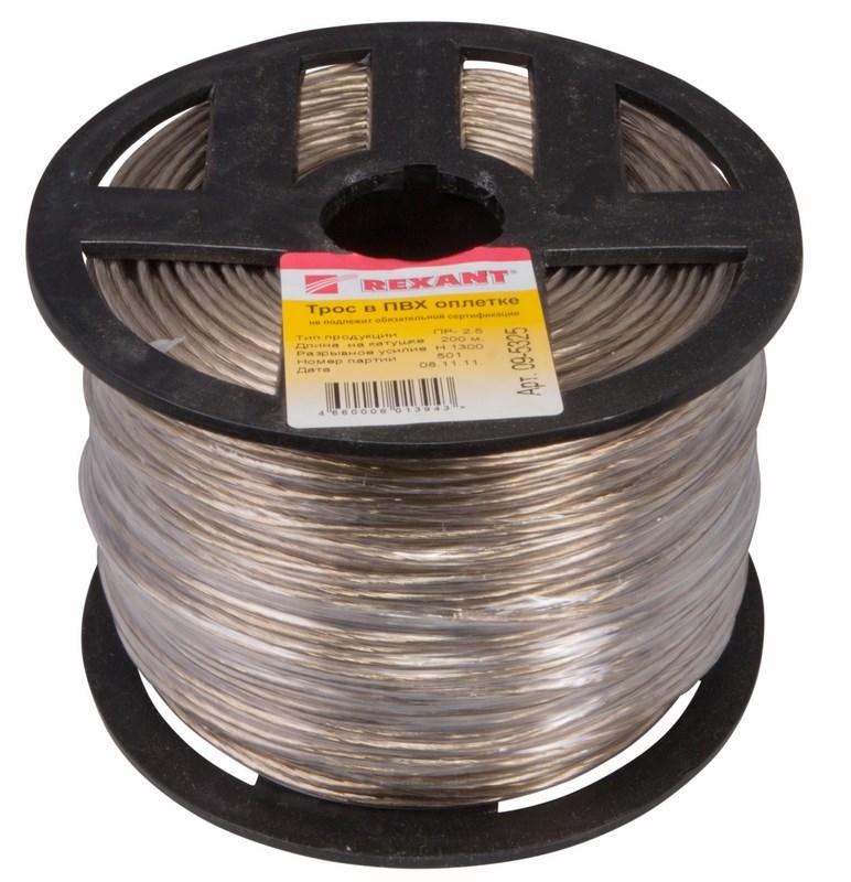 Трос стальной в ПВХ оплетке d=2,5 мм, прозрачный (бухта 200 м) | 09-5325 | REXANT
