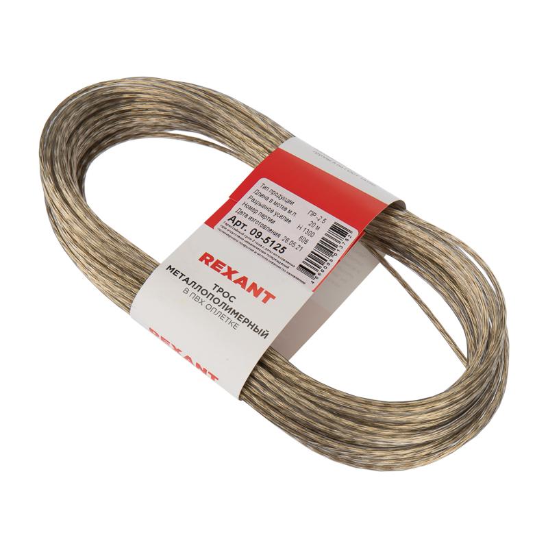 Трос стальной в ПВХ оплетке d=2,5 мм, прозрачный ( моток 20 м) | 09-5125 | REXANT