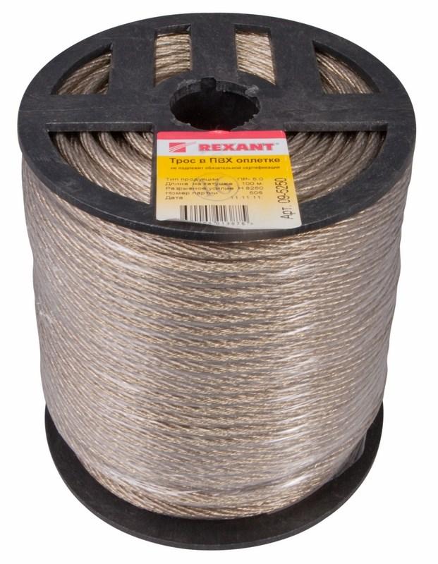 Трос стальной в ПВХ оплетке d=5,0 мм, прозрачный (бухта 100 м) | 09-5250 | REXANT