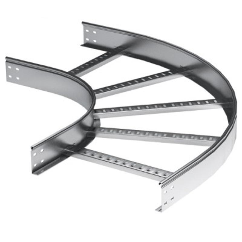 Горизонтальный угол 90 градусов обеспечивает плавный поворот трассы в горизонтальной плоскости. Позволяет проложить кабели с большим сечением благодаря радиусу изгиба R900. В состав комплектного аксессуара входят детали, необходимые для качественного и надежного монтажа: соединительные пластины и крепежные элементы. Ширина – 500 мм, высота – 100 мм. Изделие представлено в специальном исполнении "Горячий цинк", которое отличает повышенная устойчивость к коррозии.