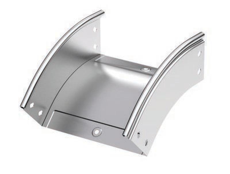 Применение лотков и аксессуаров системы "S5 Combitech" позволяют конструировать и строить кабельные трассы сложной формы, с поворотами и изгибами, как горизонтальными, так и вертикальными. Вертикальный угол внешний применяется для того, чтобы развернуть трассу в вертикальной плоскости. Аксессуар позволяет осуществить плавный поворот на 45о. Он совместим с лотками шириной 200 мм и высотой 80 мм. Внутренний радиус аксессуара – 240 мм. Толщина стали – 0,8 мм.