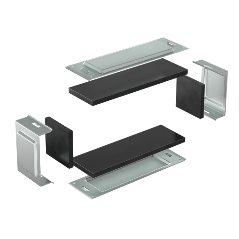 Комплект уплотнительных пластин SIP позволяют обеспечить степень пыле- и влагозащиты IP 44 в местах соединения неперфорированных лотков и крышек. В комплект входит две защитные бокововые металлические пластины, две защитные металлические пластины основания, а также 4 резиновых уплотнителя EPDM. Монтируются на каждый стык лотков. Металлические пластины плотно прижимают резиновые уплотнители к лотку, обеспечивая защиту кабеля внутри лотка от попадания пыли и влаги. Аксессуары в исполнении "Цинк-ламель" имеют специальное покрытие на основе химически активной магниевой смолы, в которую добавлены хлопья алюминия и цинка. Такое покрытие обеспечивает электрохимическую и барьерную защиту от коррозии. Показатели коррозионной стойкости цинк-ламельного покрытия ДКС аналогичны показателям горячеоцинкованного покрытия. Подходит для лотка с высотой боковой стенки 80 мм, шириной лотка 500 мм.
